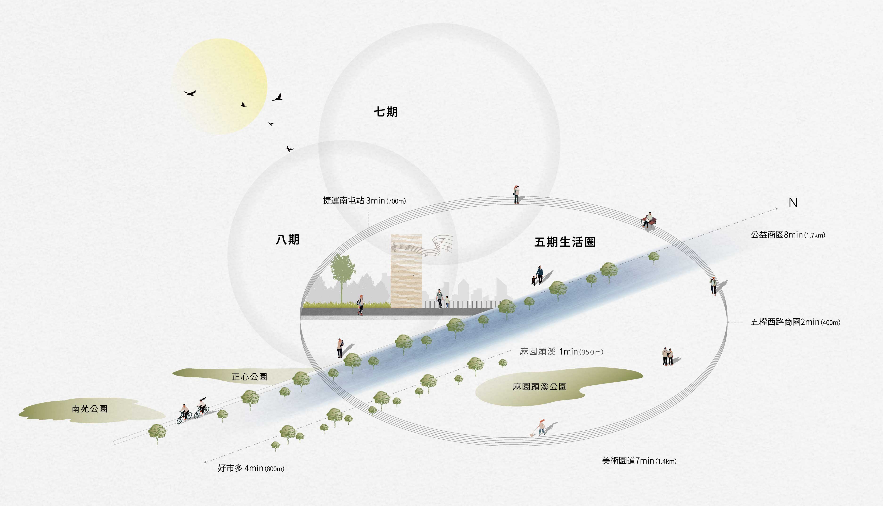五期核心地段,串聯商圈與捷運綠線,繁華便利與舒適生活一次擁有。